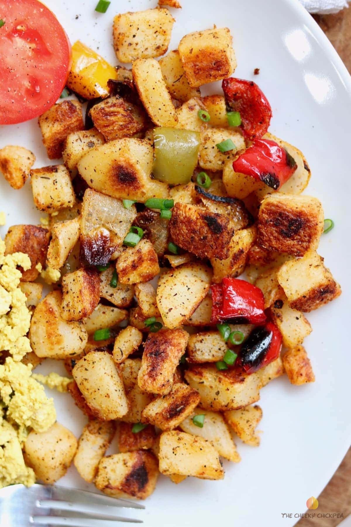 2 EGG OMELETTE W/ FETA CHEESE , ONIONS, TOMATOES, SLICED BLACK OLIVES, HOME FRIES & TOAST.