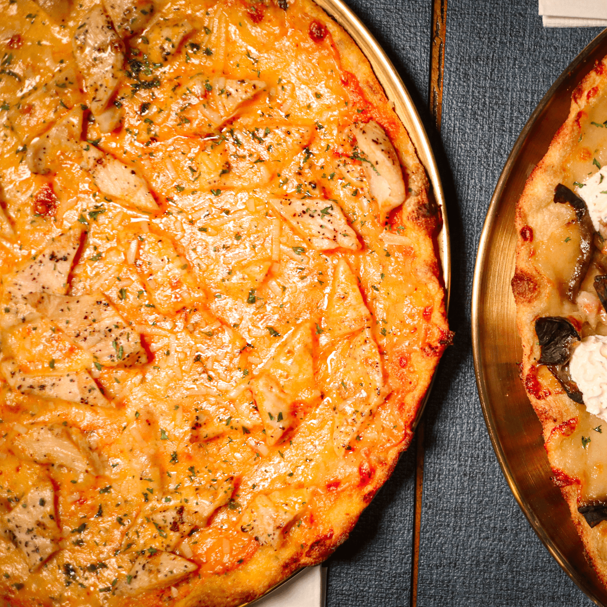 Organic chicken breast, creamy pink sauce, mozzarella, pecorino, and basil