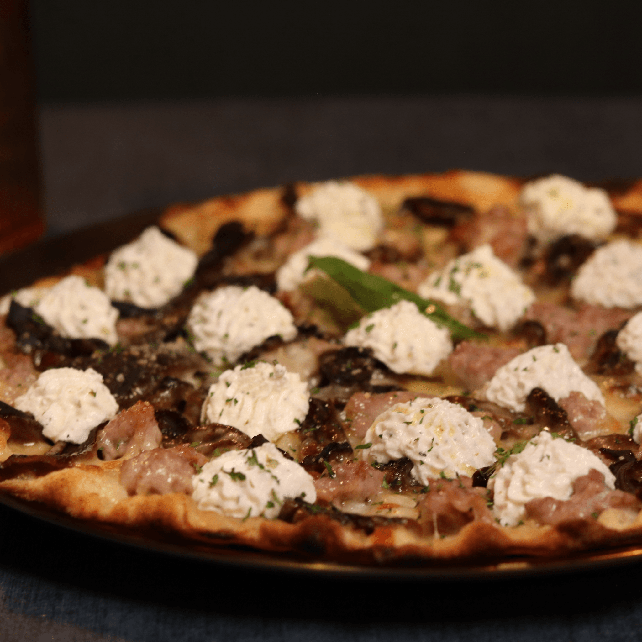 Porcini Mushrooms, Italian sausage, mozzarella, ricotta and parsley