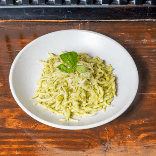 Homemade pasta with Sicilian style pistachio pesto