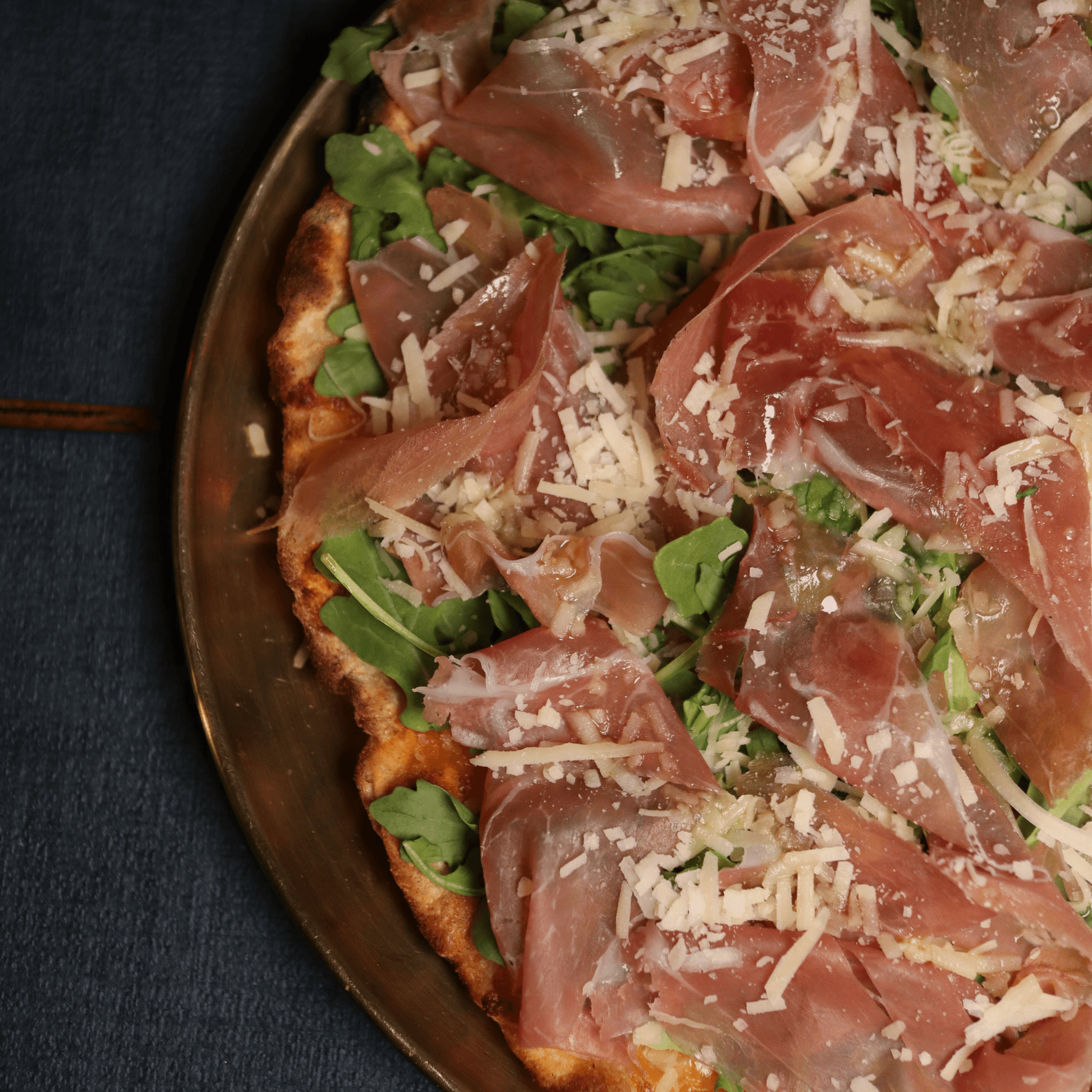 Arugula, prosciutto, mozzarella, and shaved parmigiano