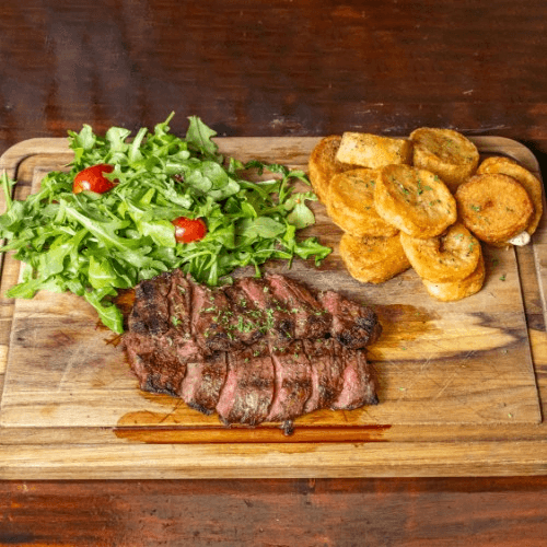 Tuscan style skirt steak, arugula & cherry tomato with roasted potatoes