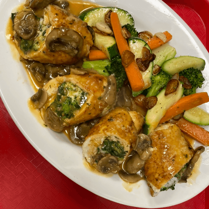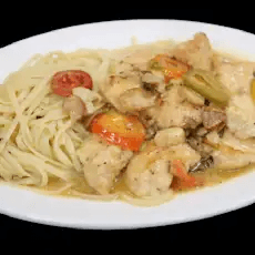 Stuffed with crab meat in a lemon, wine, and garlic sauce. Served with pasta or salad