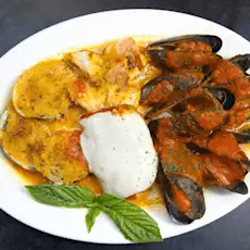 Shrimp, scallops, scungilli, and calamari over pasta with your choice of red or garlic and oil sauce