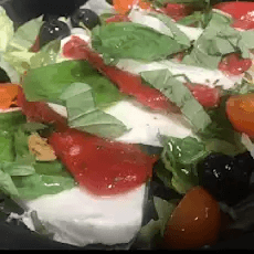 Romaine, tomatoes, red onion, kalamata olives, feta, and cucumbers