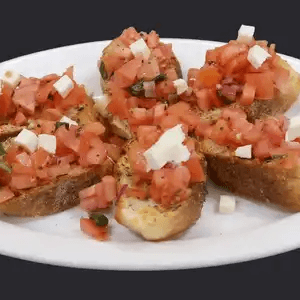 Onion, tomato, garlic, parsley, Parmesan cheese, and olive oil over toasted Italian bread