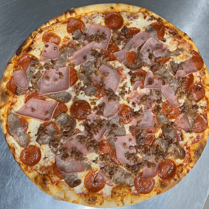 Pepperoni, sausage, ham, and bacon