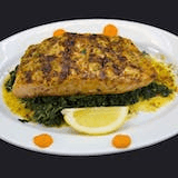 Sauteed filet of salmon or chicken with southwestern spices, roasted corn, black bean salsa, crisp corn tortillas, guacamole, roasted peppers, and lime vinaigrette