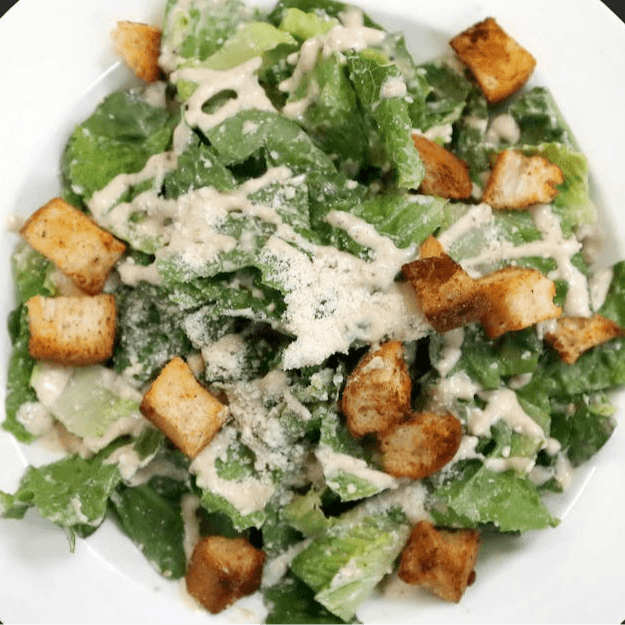 Romaine, croutons, and caesar dressing