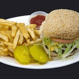 Served with lettuce, tomato, onions, American cheese, and French fries