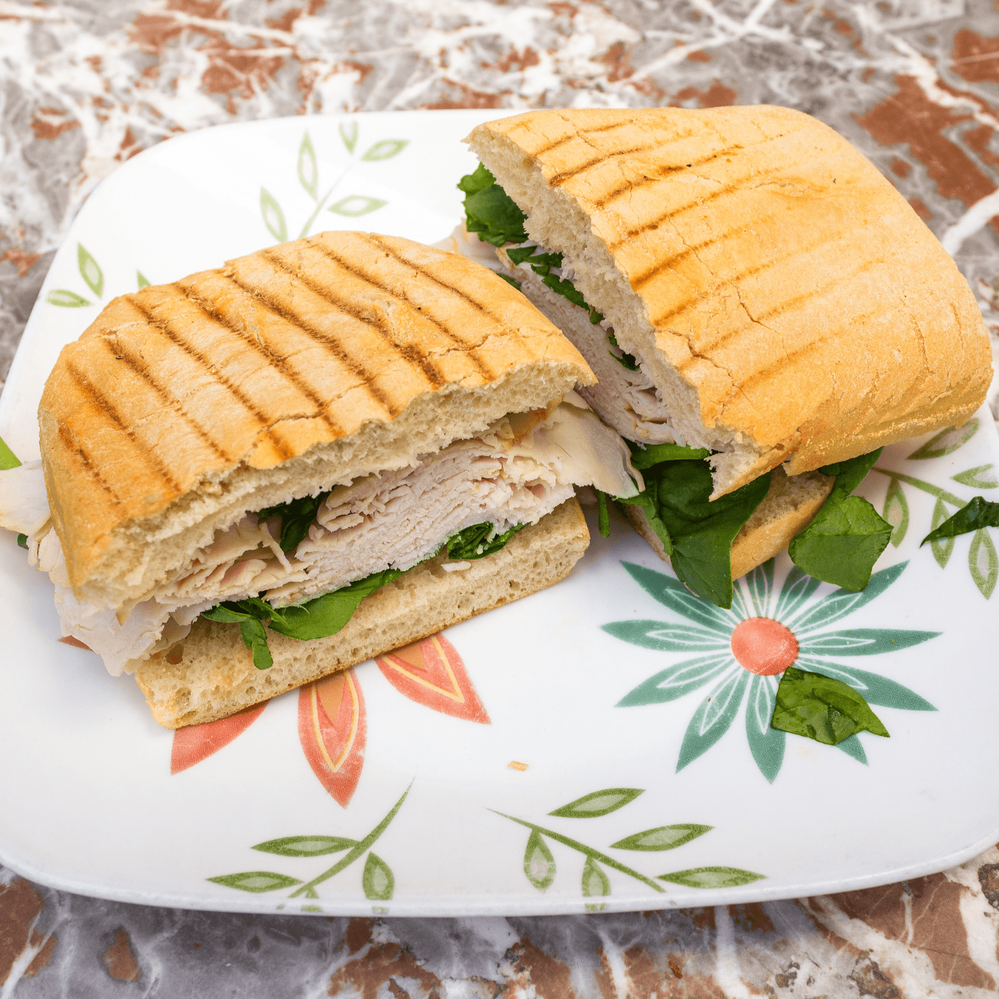 Smoked Turkey, Brie, Spinach, Honey Mustard on Ciabatta