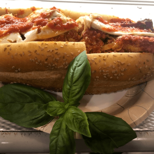 Chicken Cutlet, Marinated Eggplant, Mozzarella on Ciabatta