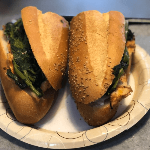 Grilled Chicken, Baby Arugula, Red onions, Melted Queso fresco, Aioli Dressing on Ciabatta