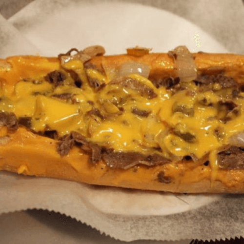 Roast beef, American cheese and sautéed onions on a Hero
