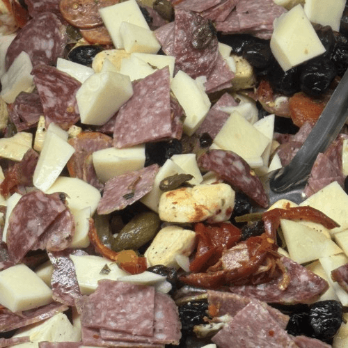 Sliced Meats, Mozzarella, provolone, sliced cherry peppers and spicy olives